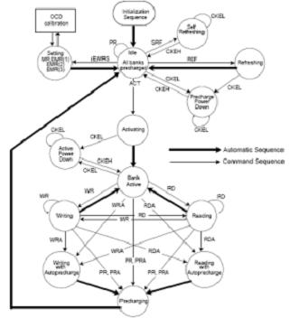 圖二 DDR2 SDRAM簡(jiǎn)化的工作狀態(tài)圖