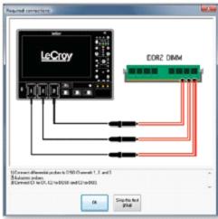 QPHY-DDR2的操作非常簡(jiǎn)單,如右圖所示,它使用友好的圖形化界面引導(dǎo)用戶從探頭與被測(cè)系統(tǒng)連接開(kāi)始一步步完成DDR2的所有測(cè)試。目前為止,力科DDR軟件包是能支持的測(cè)試項(xiàng)目最多的。