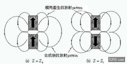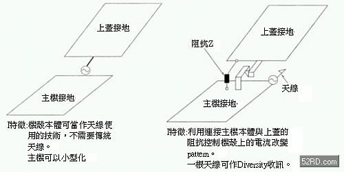 此處采取在連接移動通訊系統(tǒng)折疊機殼上增設(shè)阻抗(Impedance)Z,如此就能夠利用一種天線獲得多樣的放射pattern,這種設(shè)計最大優(yōu)點是可以大幅縮小天線的設(shè)置場所與天線結(jié)構(gòu)物的尺寸。