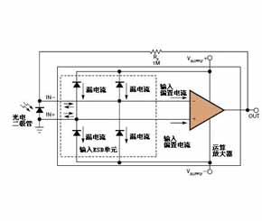 當(dāng)您研究JFET或者CMOS輸入放大器時(shí),術(shù)語(yǔ)“輸入偏置電流”便失去了它的意義。使用這類(lèi)放大器,從放大器輸入引腳下拉或者吸取的電流實(shí)際上為輸入ESD(靜電放電)單元(請(qǐng)參見(jiàn)圖1)的漏電流。