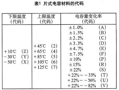 其余材料是按其工作溫度的范圍和電容量的變化率來(lái)命名的。詳見表1。