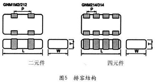 村田制作所還生產(chǎn)一種排容,在一個(gè)器件中有2至4個(gè)電容,尤其適合在單片機(jī)的總線上使用,見圖5。