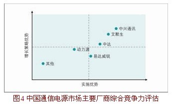 應(yīng)用Frost&Sullivan公司GEM研究方法,從增長(zhǎng)戰(zhàn)略及實(shí)施力兩個(gè)緯度,綜合評(píng)估中國(guó)通信電源市場(chǎng)主要供應(yīng)商,如圖4所示。