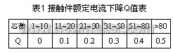 單個接觸件額定電流≥單個接觸件承載電流/(1-Q) (1)