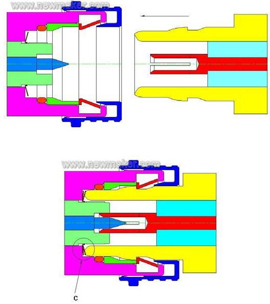 優(yōu)點(diǎn):能實(shí)現(xiàn)快插、自鎖功能,并有一個密封圈(Seal Ring)。