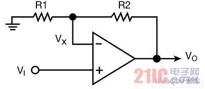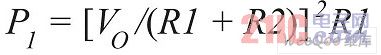 取決于負(fù)反饋分壓器中的R2/R1電阻比率。電阻器R1和R2分別消耗功率