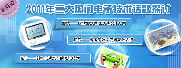 在“蘋果”和“環(huán)保”概念下,觸摸技術(shù)、逆變器技術(shù)以及新型充電技術(shù)討論將在延2011年繼續(xù)延伸。本期半月談將與大家一起探討觸摸屏在設(shè)計(jì)的時(shí)候需要注意哪些要點(diǎn),如何提高光伏逆變器效率以及新型充電技術(shù)的技巧。