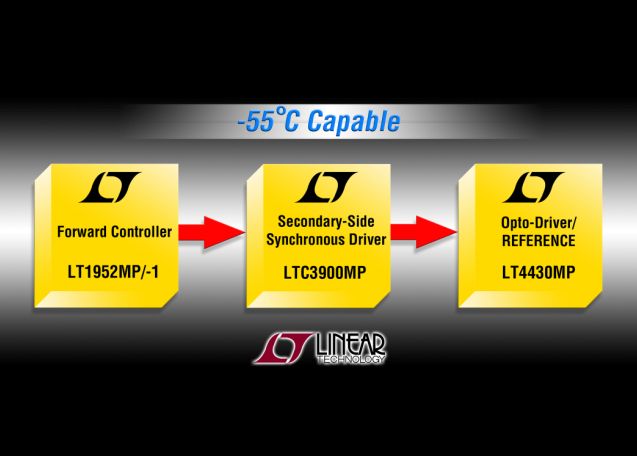 凌力爾特公司 (Linear Technology Corporation) 推出 LT1952/-1、LTC3900 和 LT4430 的高可靠性 (MP 級) 版本。這些器件合起來構(gòu)成一個高效率 (高達(dá) 95%) 同步整流隔離式正向轉(zhuǎn)換器,該轉(zhuǎn)換器規(guī)定在 -55°C 至 125°C 的節(jié)溫范圍內(nèi)工作,并在這個溫度范圍內(nèi)進(jìn)行了生產(chǎn)測試。LT1952/-1 是一款具有源變壓器復(fù)位功能的單開關(guān)正激式控制器,可向副端的 LTC3900 同步整流驅(qū)動器提供定時信號。LT4430 是一個具精準(zhǔn)基準(zhǔn)電壓的副端光驅(qū)動器,構(gòu)成了嚴(yán)格調(diào)節(jié)的隔離型正激式轉(zhuǎn)換器電路。LTC3900 和 LT4430 的最高工作節(jié)溫規(guī)定為 150°C。這種類型的正向轉(zhuǎn)換器設(shè)計非常適用于 12V、24V 和 48V 標(biāo)稱輸入電壓,這類輸入電壓常見于電信、數(shù)據(jù)通信、工業(yè)和軍事 / 航天應(yīng)用。