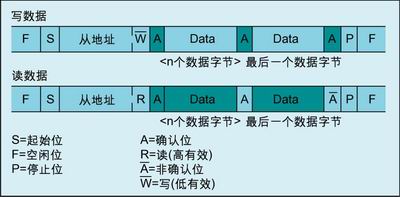 I2C允許多個(gè)主器件工作在同一總線上。多個(gè)主器件可以輕松同步其時(shí)鐘,因此所有主器件均采用同一時(shí)鐘進(jìn)行傳輸。多個(gè)主器件可以通過(guò)數(shù)據(jù)仲裁檢測(cè)哪一個(gè)主器件正在使用總線,從而避免數(shù)據(jù)破壞。由于 I2C總線只有兩條導(dǎo)線,因此新從器件只需接入總線即可,而無(wú)需附加邏輯。圖4 顯示了典型的 I2C總線讀/寫操作。