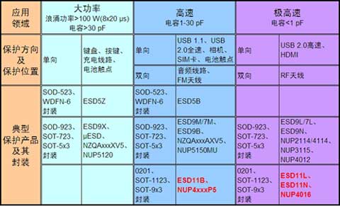 表1:便攜設(shè)備ESD保護(hù)應(yīng)用分類及典型保護(hù)產(chǎn)品(其中紅色字體為領(lǐng)先產(chǎn)品)。