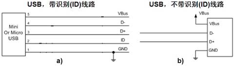 USB 2.0接口在便攜設(shè)備中的應(yīng)用范圍非常普及,在用戶的日常使用中也有著極高的使用頻率,故需要為高速的USB接口提供可靠的ESD保護(hù)。圖2顯示的是速度達(dá)480 Mbps的USB 2.0高速應(yīng)用在帶識別(ID)線路及不帶ID線路兩種情況下的簡明結(jié)構(gòu)示意圖。[page]