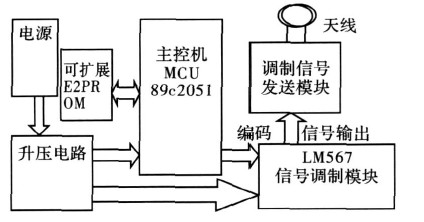 本系統(tǒng)的閱讀器可在6cm范圍內(nèi)識別應(yīng)答器的有無,若有應(yīng)答器在監(jiān)測范圍內(nèi),則給出明確的指示并讀取應(yīng)答器預(yù)設(shè)的4位編碼,然后顯示;另外,應(yīng)答器部分還可以通過開關(guān)設(shè)置4位編碼在閱讀器識別范圍內(nèi)送出編碼信號。同時閱讀器還具有對應(yīng)答器的編碼進(jìn)行寫入的功能,由應(yīng)答器接收并儲存。設(shè)計中重點是保證正確率,可以從軟件上增加校驗碼來提高無線傳輸?shù)目煽柯省?/p>