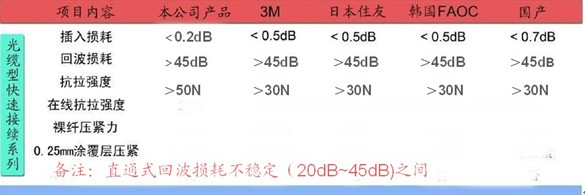 總之直通式光纖連接器對光纖直徑、對切割端面和切割長度要求嚴格,特別對夾持強度要求更加嚴格,一旦任何一處與產(chǎn)品沒有適配都將給信號的長期穩(wěn)定性帶來極大的隱患。另外,因為回波損耗的參數(shù)完全依附于光纖切割端面的情況,因此產(chǎn)品的回波損耗指標對照差,故不適宜用于FTTH接入鏈路的規(guī)模使用。