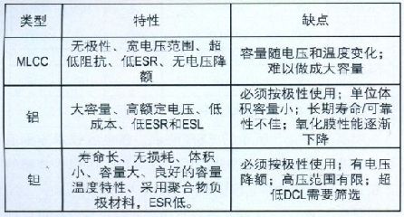 鑒于醫(yī)療設(shè)備對高可靠性的要求,本文就商用鉭電容和醫(yī)用鉭電容的設(shè)計(jì)取舍進(jìn)行了舉例,并介紹了有助于改善性能的一些新發(fā)展。本文還重點(diǎn)介紹了電容技術(shù)的一般性選擇標(biāo)準(zhǔn)和可以在便攜式醫(yī)療設(shè)備中使用的封裝技術(shù)的進(jìn)展情況。在便攜式醫(yī)療設(shè)備中最常用的大容量電容類型有多層陶瓷電容(MLCC)、鋁電解電容和固體鉭電容。表1就每種電容技術(shù)的某些一般特性和可能的缺點(diǎn)進(jìn)行了介紹。