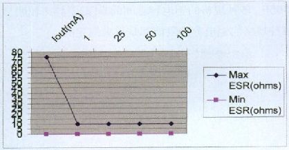 舉例來說,如果使用10μF的鉭電容用于負(fù)載線瞬態(tài)穩(wěn)定,10kHz下測得的ESR的安全工作范圍為最大10Ω,最低10mΩ(見圖2)。