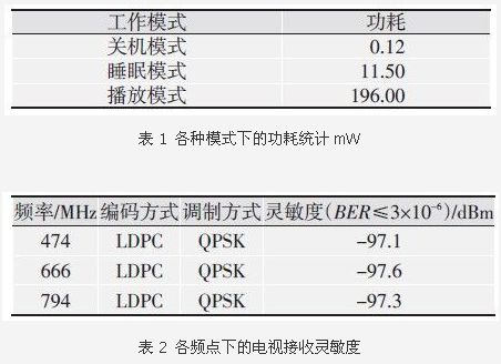 從測試結(jié)果可知,功耗結(jié)果滿足智能手機(jī)實(shí)際使用要求,在UHF的整個(gè)頻段,CMMB電視接收模塊的靈敏度都要優(yōu)于規(guī)范要求的-95 dBm.