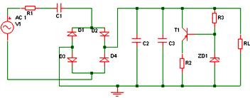 3、電容降壓電路是一個電流源,只需改變基準電壓元件,就可得到很寬范圍內的任一DC電壓源;