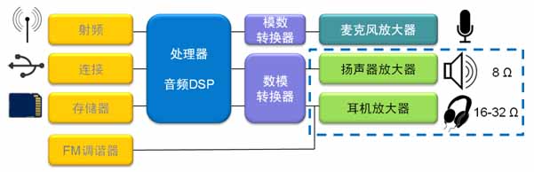 近年來,智能手機集成的功能越來越多,但在基本的音頻放大應用方面,在繼續(xù)優(yōu)化性能表現(xiàn)及用戶音頻體驗方面仍有繼續(xù)提升的空間。原因是智能手機存在著特殊的音頻要求,例如:智能手機存在基帶/應用處理器、調頻(FM)廣播、藍牙(耳機)等多種音頻輸入源;編解碼器(CODEC)可以集成在模擬基帶中,也可獨立存在;多數(shù)情況下最少是揚聲器放大器保持單獨存在(不集成),從而提供足夠輸出功率;耳機放大器外置,配合高保真(Hi-Fi)音樂播放。