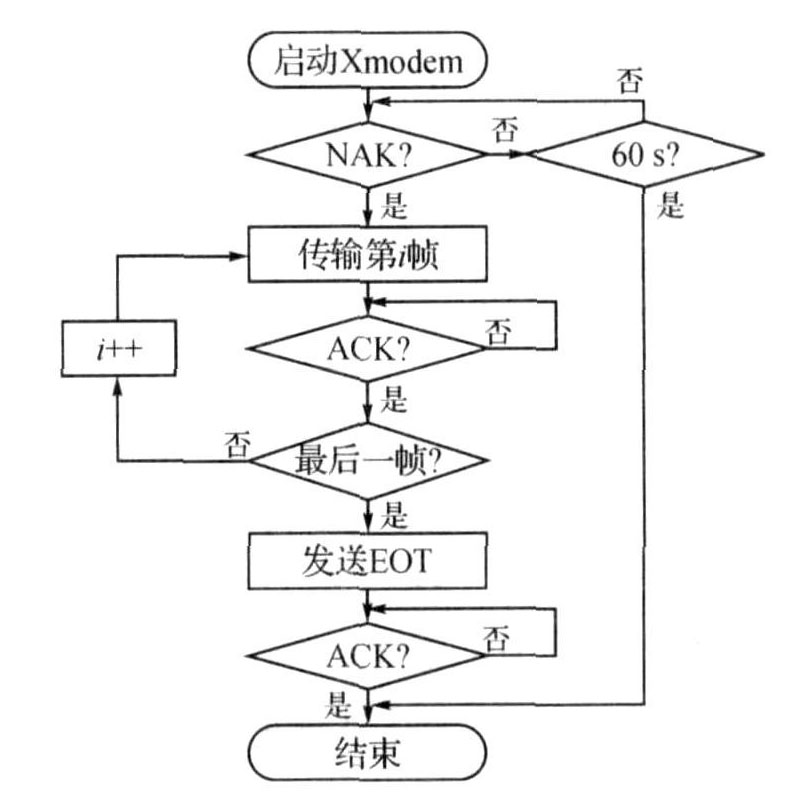 Xmodem協(xié)議的開始標志是文件接收方發(fā)出"NAK"字節(jié),文件發(fā)送方在收到該信號后發(fā)送數(shù)據(jù)幀,雙方開始正常通信過程?;赬modem協(xié)議上傳圖片的流程如圖4所示。