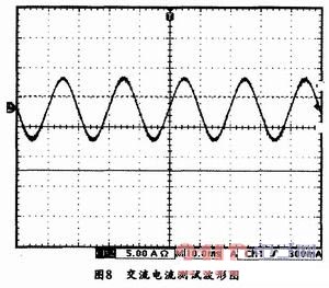 圖8所示是數(shù)字控制逆變器的交流電流測(cè)試波形,由圖8可以看出,本系統(tǒng)的交流輸出電流十分穩(wěn)定,完全能夠滿足設(shè)計(jì)要求。