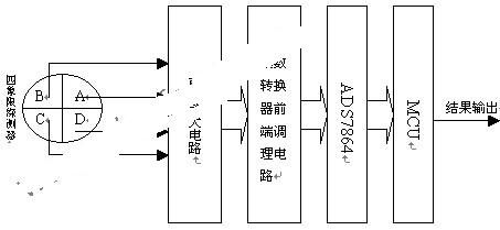 信號(hào)通過放大和調(diào)理后由由A/D轉(zhuǎn)換器(本系統(tǒng)中采用ADS7864)采樣轉(zhuǎn)換成數(shù)字量送入單片機(jī),由單片機(jī)處理后得到目標(biāo)的方位,并根據(jù)實(shí)際系統(tǒng)的需要輸出方位控制指令。