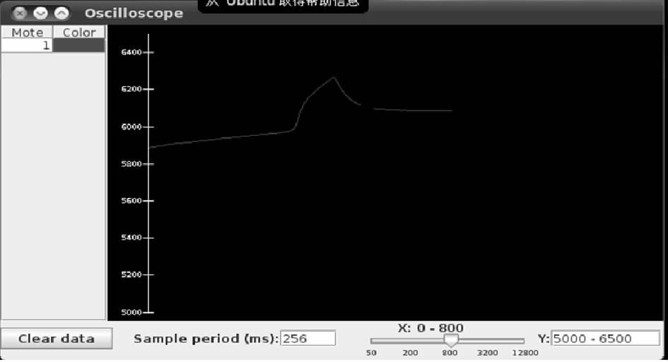 TinyOS是UC Berkeley開發(fā)的開放源代碼操作系統(tǒng),專為嵌入式無線傳感器設計,操作系統(tǒng)基于構件的架構使得快速更新成為可能,而這又減小了受傳感器網(wǎng)絡存儲器限制的代碼長度。TinyOS的構件包括網(wǎng)絡協(xié)議、分布式服務器、傳感器驅(qū)動及數(shù)據(jù)識別工具。其良好的電源管理源于事件驅(qū)動執(zhí)行模型,該模型也允許時序安排具有靈活性。因此對于整個無線傳感器網(wǎng)絡的驗證采用TinyOS操作系統(tǒng),設計為兩個節(jié)點,節(jié)點A負責采集溫度濕度數(shù)據(jù),然后將采集到的數(shù)據(jù)發(fā)送到另一個節(jié)點B,節(jié)點B接收到數(shù)據(jù)后,通過USB將數(shù)據(jù)傳輸?shù)絺€人電腦,并將該數(shù)據(jù)通過圖表顯示,如圖10所示。