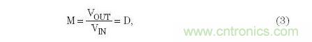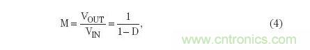 CCM模式下的反向降壓-升壓轉(zhuǎn)換器的電壓轉(zhuǎn)換率可表示為: