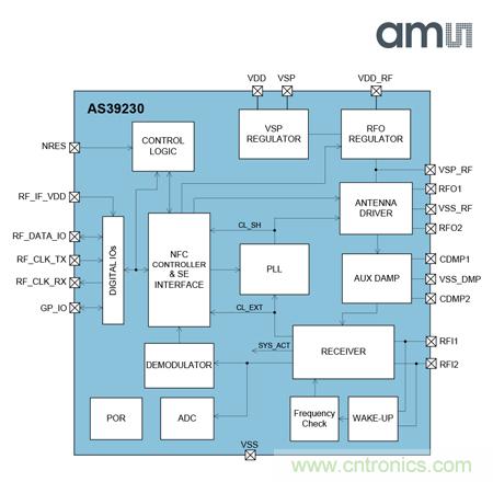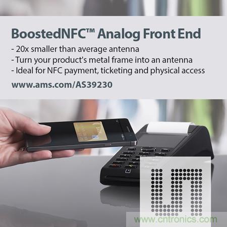 ams的新AS39230可提升天線信號(hào)質(zhì)量,從NFC標(biāo)簽、卡或卡仿真器向NFC讀寫器發(fā)送信號(hào),AS39230的信號(hào)強(qiáng)度是采用傳統(tǒng)無(wú)源負(fù)載調(diào)制(PLM,passive load modulation)方法的10倍。在空間受限的設(shè)計(jì)中,天線尺寸可縮至二十分之一,面積僅為100mm2或更小,同時(shí)可以保持信號(hào)強(qiáng)度不變。AS39230甚至準(zhǔn)許產(chǎn)品的金屬殼充當(dāng)天線,將NFC天線所需的電路板空間及相關(guān)成本降至零。