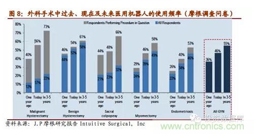 雖然當(dāng)前醫(yī)用機器人普及率還很低,并且安裝的大部分是發(fā)達國家,但摩根的近期的一個調(diào)查研究中問及外科醫(yī)生們未來他們會在自己在手術(shù)中多高頻率的使用醫(yī)用機器人,數(shù)據(jù)表明美國的外科醫(yī)生們認(rèn)為未來3-5年里醫(yī)用機器人在手術(shù)中的使用率會迅速上升到一個比較高的層次,約占50%,醫(yī)用機器人市場潛力巨大。IFR預(yù)測在未來的4年里,醫(yī)療機器會以每年19%的速度增長,2016年全球市場規(guī)模估計會增長到119億美元。