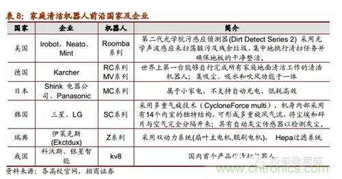 根據(jù)中國品牌網(wǎng)統(tǒng)計公布的2013年十大掃地機器人品牌排行榜,我國國產(chǎn)掃地機器人有6家上榜。目前為止,我國已經(jīng)有一部分表現(xiàn)優(yōu)良的企業(yè)涉足家用清潔機器人的開發(fā)和生產(chǎn),都和國內(nèi)高校研發(fā)機構(gòu)有所合作,做到研產(chǎn)結(jié)合。當(dāng)前機器人行業(yè)發(fā)展的宏觀前景良好,市場潛力巨大,目前我國會在未來出現(xiàn)一批在細(xì)分行業(yè)技術(shù)領(lǐng)先表現(xiàn)良好的潛力企業(yè)。