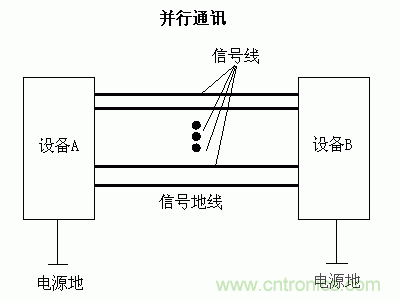 并行通訊中,基本原理與串行通訊沒(méi)有區(qū)別。只不過(guò)使用了成倍的信號(hào)線路,從而一次可以傳送更多bit的信號(hào)。