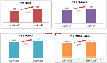 圖表3:其他四大設(shè)備商2015年前三季度營(yíng)收情況