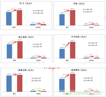 圖表6:2015年前三季度國(guó)內(nèi)六大上市光纖光纜企業(yè)市場(chǎng)表現(xiàn)