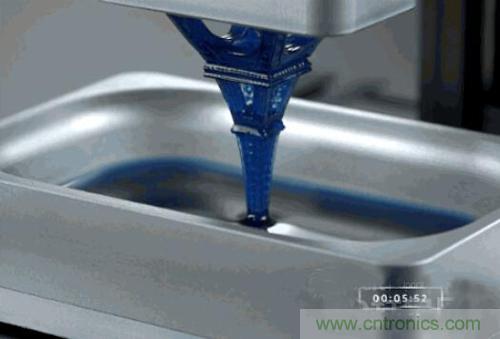 在從液體里“拉”出固體的3D打印技術(shù)當(dāng)中,活化固化劑的方式從熱壓變成了光,所以這種技術(shù)被稱為立體光固化成型(SLA)。這里所用到的液體材料被稱為光敏樹脂,一般是環(huán)氧樹脂或不飽和聚酯等摻雜一些對(duì)特定波長(zhǎng)敏感的光引發(fā)劑制成的。這類技術(shù)本身也并不是什么新生事物了,它的歷史可以追溯到1984年。