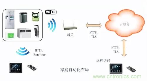 從上圖可看出,家庭自動化系統(tǒng)將嵌入式微控制器技術(shù)、無線連接、接入網(wǎng)絡(luò)融合為一體。Apps軟件能夠使用戶發(fā)現(xiàn)家里的設(shè)備,予以設(shè)置,或者創(chuàng)建一個動作加以控制。