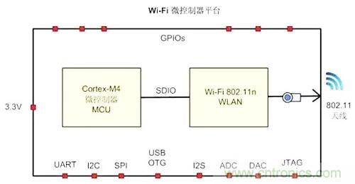 微控制器是家居智能化的關(guān)鍵部件。MCU和Wi-Fi是最基本的兩個元素。以某一Wi-Fi微控制器為例,它是內(nèi)置全功能微控制器的單芯片SoC,支持802.11n Wi-Fi。