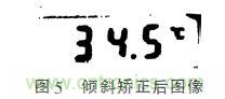由圖4(b)可以看出,經(jīng)膨脹處理和邊緣檢測后的圖像可以將液晶屏數(shù)字的輪廓勾勒出來。對圖4(b)進(jìn)行霍夫變換,可以獲取圖像中每條線段的端點(diǎn),進(jìn)而可以求其反正切函數(shù),即求得每條線段與橫軸之間的夾角。對其余傾斜角求取平均值,即認(rèn)為是圖3(c)的傾斜角度。