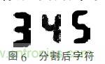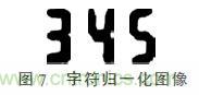 得到字符在圖像中的位置后,即可將字符從圖像中分割出來。由于實(shí)際分割過程中每個字符大小不一致,如圖6所示,所以對分割字符進(jìn)行歸一化處理,使不同字符的大小統(tǒng)一為固定大小,便于后續(xù)字符分割。首先將圖6中字符周圍的空白位置切除,然后采用三次樣條插值的方法,對源圖像附近的4×4個鄰近像素進(jìn)行三次樣條擬合,最后將目標(biāo)像素對應(yīng)的三次樣條值作為目標(biāo)圖像對應(yīng)像素點(diǎn)的值。將字符歸一化以后,所得各個字符如下圖7所示。