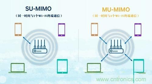 其實(shí)MU-MIMO一詞與802.11n時(shí)代的“MIMO”一詞頗有淵源。MIMO,即MultipleInputMultipleOutput(多輸入多輸出)的縮寫,MIMO技術(shù)可簡(jiǎn)單理解為將網(wǎng)絡(luò)資源進(jìn)行多重切割,然后經(jīng)過多重天線進(jìn)行同步傳送。其帶來的好處是增加單一設(shè)備的數(shù)據(jù)傳輸速度,同時(shí)不用額外占用頻譜范圍;此外,其還能增加無線訊號(hào)接收距離??梢哉f,從11g時(shí)代54Mbps的傳輸速率,到11n時(shí)代的300Mbps,甚至是600Mbps的傳輸速率,MIMO技術(shù)功不可沒。