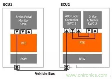每個ECU都有為它量身定制的運行環(huán)境(RTE),通??赏ㄟ^配套的設(shè)計工具來自動創(chuàng)建。真正的電子控制單元之間的實際通信將實現(xiàn)成CAN或Flex Ray總線的一部分,而運行環(huán)境通過產(chǎn)生工具進行配置,以便執(zhí)行相連AUTOSAR組件所需的通信路徑。運行環(huán)境可以切實執(zhí)行虛擬功能總線和架構(gòu)設(shè)計流程的通信和連接拓撲。由于AUTOSAR標(biāo)準(zhǔn)支持很多不同類型的軟件組件,運行環(huán)境必須考慮各種軟件組件存在的限制和變化。