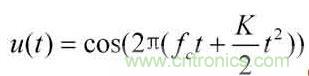 式中fe為載波頻率,K=B/T是調(diào)頻斜率,于是,信號(hào)的瞬時(shí)頻率為。