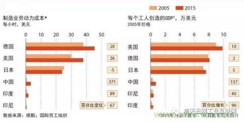 上世紀(jì)90年代,無數(shù)跨國公司踏上珠三角這片熱土,引入先進(jìn)的生產(chǎn)線和技術(shù)與這里的低工資形成了一個世界級無可匹敵的組合,生產(chǎn)的各種商品源源不斷出口滿足西方富裕世界無止境的消費需求。而現(xiàn)在,西方世界經(jīng)濟(jì)發(fā)展停滯遏制了對中國商品需求的增長,而勞動力短缺和工資上漲將中國制造業(yè)工資推高了四倍,如下圖示所示,目前中國的工資水平顯著高于東南亞和印度,珠三角低端制造業(yè)快速向東盟國家轉(zhuǎn)移。