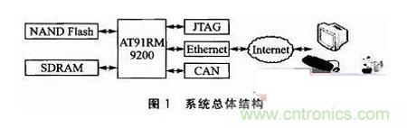支持遠程自動更新的嵌入式Linux系統(tǒng)機構,它可以分為嵌入式終端和遠程管理系統(tǒng)兩部分。系統(tǒng)的總體結構如圖1所示,嵌入式終端采用基于ARM9架構的AT91RM9200微處理器,采用擴展的32MB SDRAM,由2片16位數(shù)據(jù)寬度的SDRAM芯片HY57V281620并連而成,采用64MB NANDFla sh存儲芯片K9F1208,運行嵌入式Linux系統(tǒng)。遠程管理系統(tǒng)選用PC機。嵌入式終端通過以太網(wǎng)連接到遠程管理系統(tǒng),管理人員可以通過telne t即可對各個嵌入式終端進行監(jiān)控、管理和遠程更新。