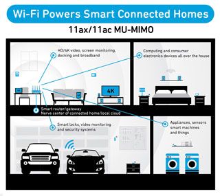 802.11ax將大幅提高網(wǎng)絡容量,支持多達8個同步數(shù)據(jù)流,每個數(shù)據(jù)流速率最高為1.2 Gbps,從而能以更高速度連接更多設備。Qorvo豐富的802.11ax 產(chǎn)品組合包括2.4GHz和5GHz前端模塊(FEM)及BAW濾波器。該產(chǎn)品組合中的高能效FEM減少了與支持Wi-Fi設備中多路輸入多路輸出(MIMO)相關(guān)的散熱問題,使制造商得以壓縮產(chǎn)品尺寸和成本。Qorvo BAW帶緣和共存濾波器可改善Wi-Fi服務質(zhì)量,防止相鄰LTE頻率干擾。