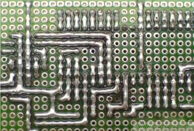 很多初學者焊的板子很不穩(wěn)定,容易短路或斷路。除了布局不夠合理和焊工不良等因素外,缺乏技巧是造成這些問題的重要原因之一。掌握一些技巧可以使電路反映到實物硬件的復雜程度大大降低,減少飛線的數量,讓電路更加穩(wěn)定。下面就筆者的經驗談談洞洞板的焊接技巧。