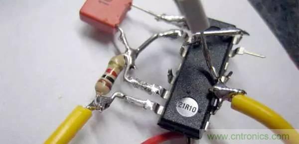 洞洞板的焊接需要大量的跨接、跳線等,不要急于剪斷元器件多余的引腳,有時候直接跨接到周圍待連接的元器件引腳上會事半功倍。另外,本著節(jié)約材料的目的,可以把剪斷的元器件引腳收集起來作為跳線用材料。