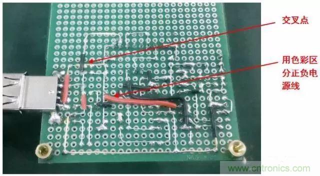 電源貫穿電路始終,合理的電源布局對簡化電路起到十分關鍵的作用。某些洞洞板布置有貫穿整塊板子的銅箔,應將其用作電源線和地線;如果無此類銅箔,你也需要對電源線、地線的布局有個初步的規(guī)劃。
