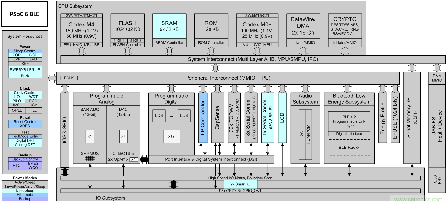 例如,用于制造賽普拉斯半導(dǎo)體 PSoC 6 BLE 系列 MCU 的 40 納米工藝技術(shù),為各種物聯(lián)網(wǎng)應(yīng)用提供了高性能,且高效節(jié)能的解決方案。深度睡眠時的電流僅為幾微安,且能夠完全保留RAM數(shù)據(jù)。運行、睡眠、低功耗運行和低功耗睡眠等其他功耗模式,助力開發(fā)人員能夠在靈活地優(yōu)化系統(tǒng)功耗的同時根據(jù)需求保持應(yīng)用的高性能。