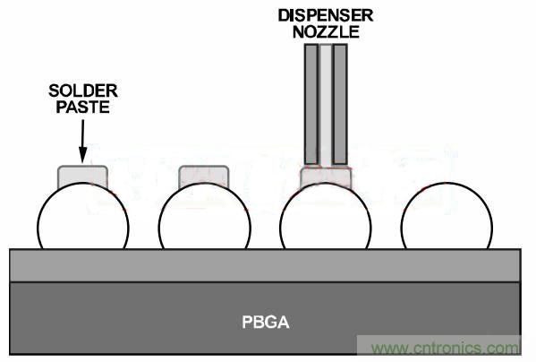 圖9. 將焊膏分配到焊球上