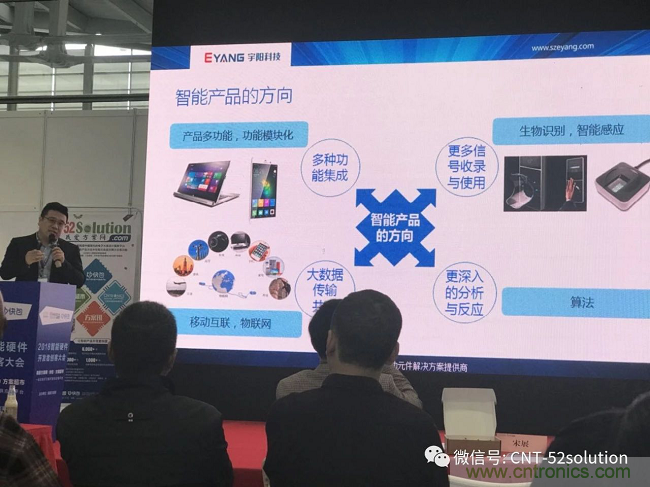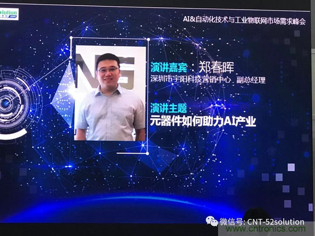 為積極推動(dòng)跨行業(yè)的電子開發(fā)需求與方案服務(wù)商的對(duì)接,大力發(fā)展技術(shù)外包服務(wù),服務(wù)國家創(chuàng)新戰(zhàn)略,搶占人工智能技術(shù)和應(yīng)用的制高點(diǎn),近日,我愛方案網(wǎng)策劃主辦了2018AI&自動(dòng)化技術(shù)與工業(yè)物聯(lián)網(wǎng)市場(chǎng)需求峰會(huì),這是第六屆中國電子信息博覽會(huì)的核心活動(dòng)。中國優(yōu)秀的元件技術(shù)供應(yīng)商宇陽科技副總鄭春暉在峰會(huì)上做《元器件如何助力AI產(chǎn)業(yè)》的大會(huì)報(bào)告。